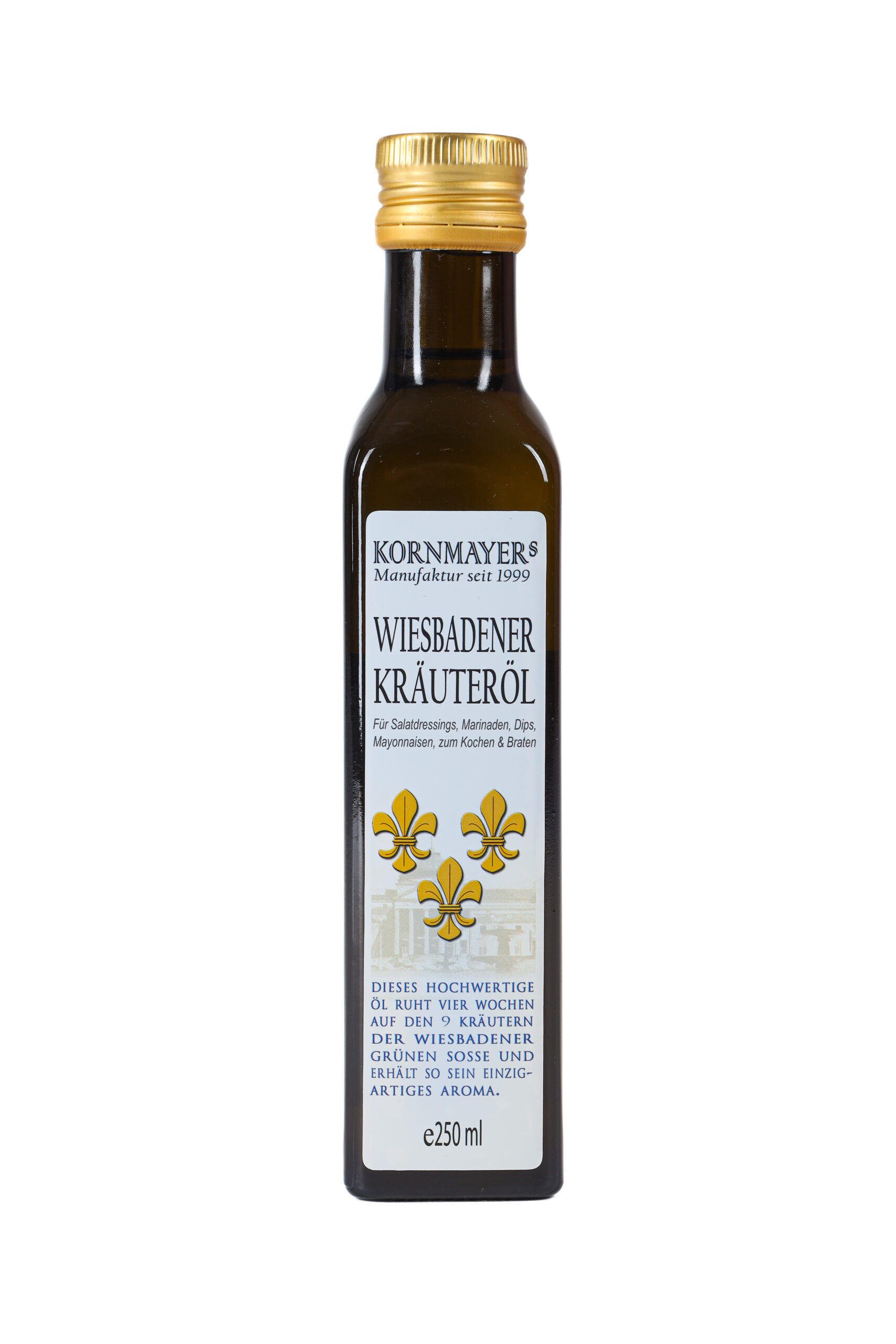 Reines, hochwertiges Rapsöl, aromatisiert mit den 9 frischen Kräutern der Wiesbadener Grünen Soße.